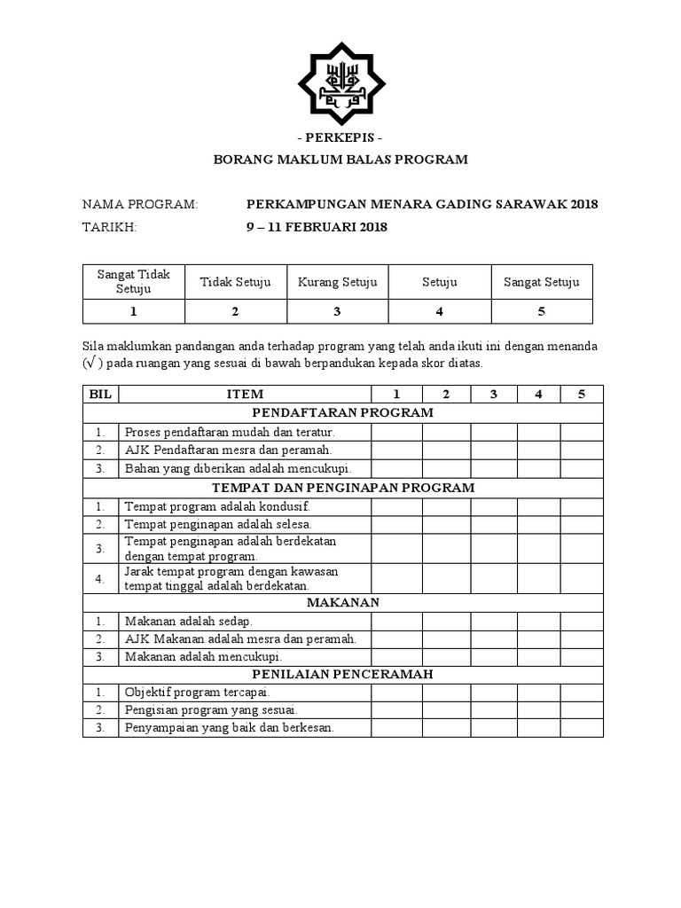 Borang Maklum Balas Program Pra from imgv2-1-f.scribdassets.com Program khas biasiswa dymm sultan selangor. Semua medan yang bertanda * perlu diisi. 2 memasukkan program atau atur cara ke dlm komputer supaya sesuatu tugas dpt dijalankan mengikut arahan. Perkampungan menara gading sarawak 2018. Tercapai kurang tercapai tidak tercapai 10 9 8 7 6 5 4 3 2 1 4. Soal selidik keberkesanan program motivasi pelajar by hamizah ajam. Borang permohonan kerja bergaji hari. By hasni dolmat 15840 views.