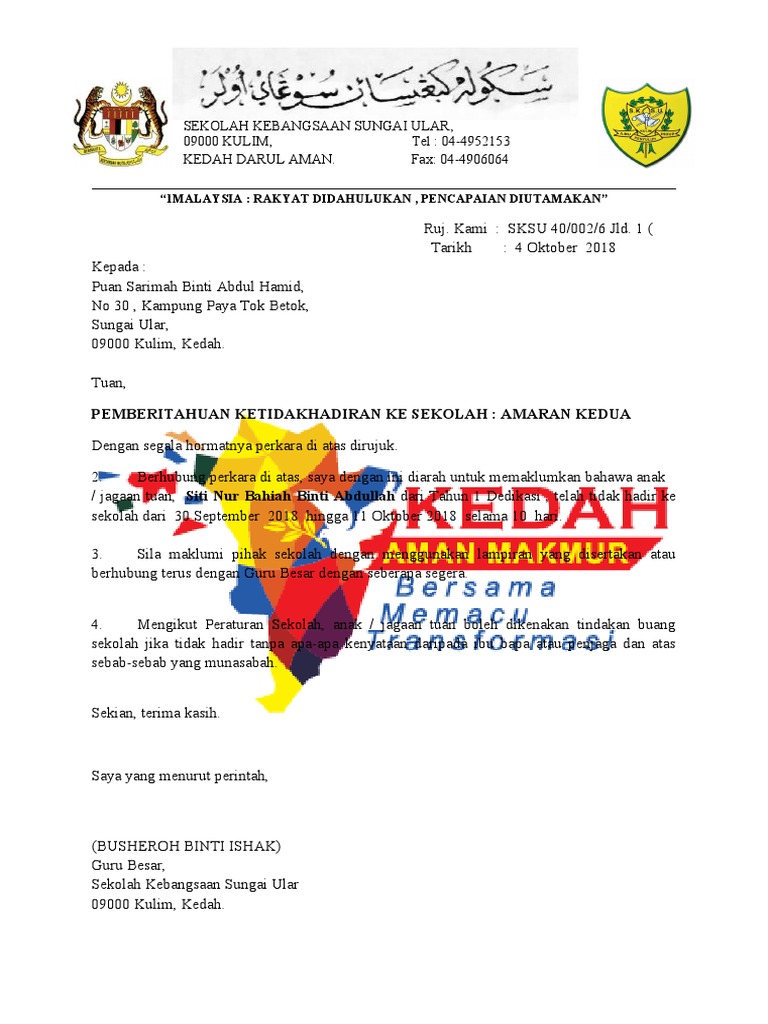 Contoh surat amaran ketidakhadiran kerja suratmenyurat net. Surat lamaran kerja ini akan menjelaskan tentang profil calon pekerja apakah layak bekerja di perusahaan tersebut atau tidak. 2012 kepada suhaidan bin suhaimi tuan, surat amaran pertama merujuk maklumat di atas, adalah dimaklumkan bahawa,anda yang bernama suhaidan bin suhaimi pekerja di syarikat kt northern. Dari surat lamaran kerja yang anda kirimkan, pihak perusahaan akan menilai anda. Proses dan cetak surat amaran ponteng pertama sekolahmalaysia com.
